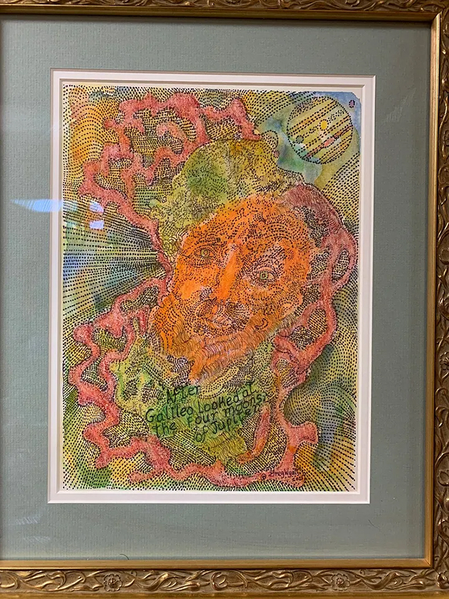 Circondando l’immagine di Galileo con le stesse frasi che hanno plasmato la sua eredità, il ritratto acquerellato a puntini acquista una voce, invitando gli spettatori non solo a vedere Galileo come appariva, ma a sentire il ritmo dei suoi pensieri, la poesia della sua scienza e l’eterna ricerca della verità che ha definito la sua vita e la sua eredità.