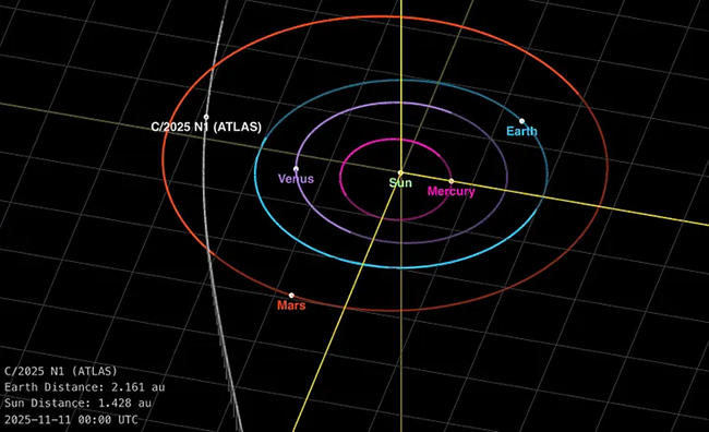 A partire da oggi, 11 novembre 2025, gli osservatori terrestri possono concentrarsi di nuovo su 3I/ATLAS poiché la sua separazione angolare dal Sole cresce oltre i 30 gradi nel cielo.