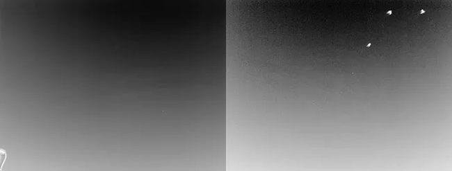 Lo stesso aereo è osservato come un punto bianco nel quarto inferiore destro dell’immagine a sinistra e come un punto bianco vicino al centro dell’immagine a destra (insieme a tre uccelli che volano sopra di esso). Queste due immagini sono state catturate da due telecamere a infrarossi separate da circa 10 chilometri. Il confronto delle immagini, insieme a timbri temporali accurati, consente di inferire la distanza dell’aereo con una precisione migliore del 10%. (Credito immagine: Regina Sarmiento, Progetto Galileo)